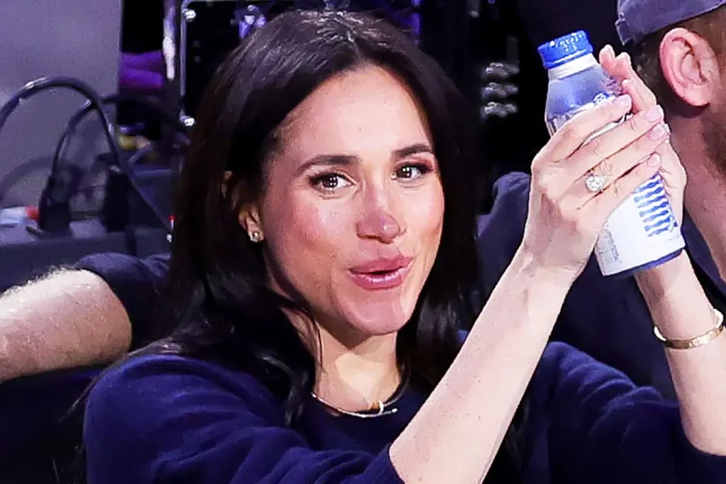 Meghan Markle stepped out courtside with Prince Harry at the 75th NBA All-Star Game wearing a striking new diamond ring on her right hand that quickly became one of the evening’s most talked-about details. Photographs from the event, widely published by established entertainment and fashion outlets, confirmed the presence of a noticeably large pear-shaped stone that immediately became a talking point in celebrity jewelry coverage.
